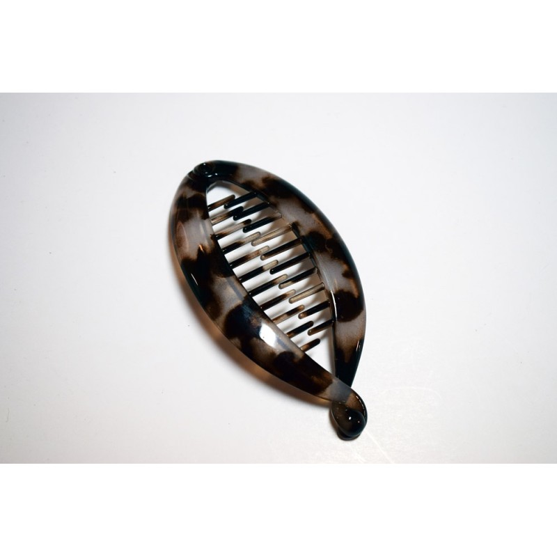 Η μπανάνα, είναι ένα κλασσικό αξεσουάρ μαλλιών. Πρακτική, μεσαίου μεγέθους 11cm, εξασφαλίζει δυνατό κράτημα, χωρίς να τραβάει ή να ταλαιπωρεί τα μαλλιά. Εξαιρετικής αντοχής & καλής ποιότητας υλικό. Κατάλληλη για κλασσική αλογουρά, ή για να συγκρατήσετε με αυτά έναν κότσο.