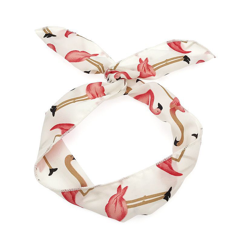 Συρμάτινη κορδέλα με εντυπωσιακό flamingo print. Φτιαγμένη από ανάλαφρο chiffon ύφασμα, συγκρατεί με ασφάλεια τα μαλλιά και προσφέρει ένα αξεπέραστο vintage & pin-up style. Στο εσωτερικό της υποστηρίζεται με σύρμα, το οποίο σας επιτρέπει να συγκρατήσετε τα μαλλιά σας σε ότι σχήμα θέλετε. Μπορείτε να το φορέσετε με τον φιόγκο μπροστά, στο πλάι ή και να στηρίξετε με αυτό έναν εντυπωσιακό κότσο.