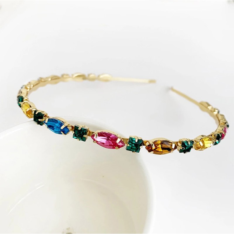 Βραδυνό στεφανάκι με άνετη και σταθερή εφαρμογή, διακοσμημένο με εντυπωσιακούς πολύχρωμους κρυστάλλους εξαιρετικής λάμψης και ποιότητας. Ιδανικό για γάμους ή και βραδυνές/επίσημες εμφανίσεις. Συνδυάζεται άνετα με όλα τα στυλ και χτενίσματα.