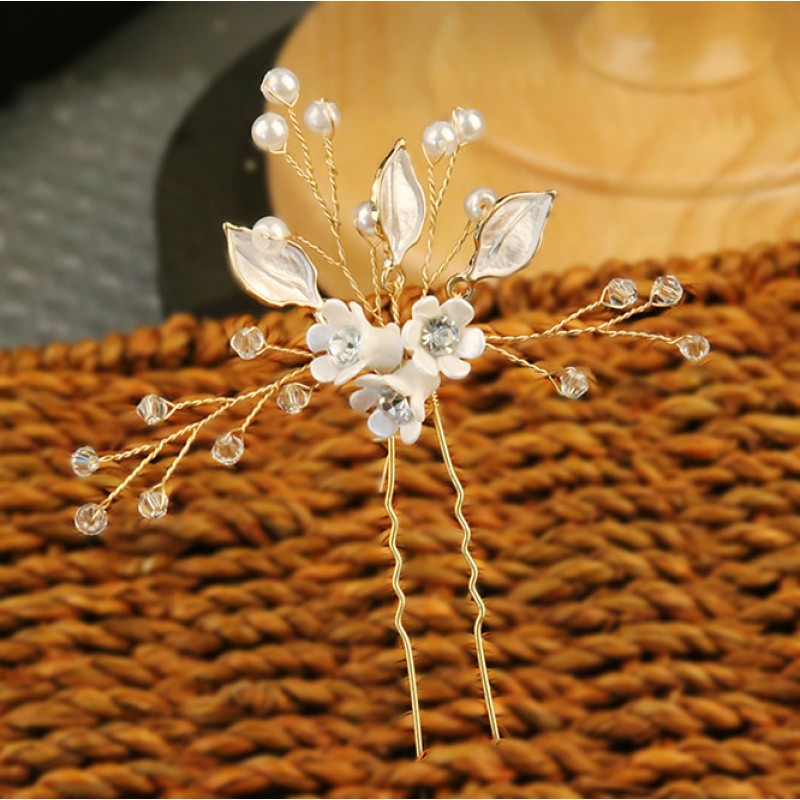 Αυτή η μεταλλική φουρκέτα είναι ένα υπέροχο πολυτελές στολίδι σε σχήμα λουλουδιού, το οποίο είναι διακοσμημένο με υπέροχες πέρλες και στρας. Ένα όμορφο και εκλεπτυσμένο αξεσουάρ, το οποίο θα προσθέσει ένα εντυπωσιακό φινίρισμα στο χτένισμα σας, στην ημέρα του γάμου σας ή στις επίσημες εξόδους σας.