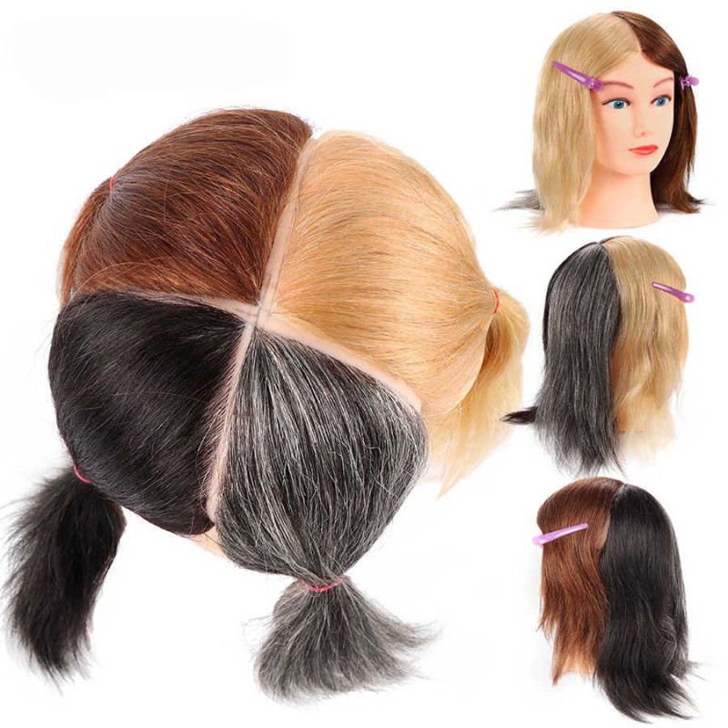 Εκπαιδευτική κούκλα κομμωτικής με 4 χρώματα: #2, #27, #Γκρι, #613, με 100% φυσική τρίχα εξαιρετικής ποιότητας. Η τέλεια λύση για εξάσκηση βαφής. Μήκος: 35cm.