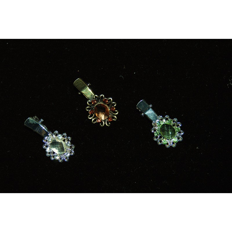 Μεταλλικά οβάλ τσιμπιδάκια, διακοσμημένα με στρας σε τρία χρώματα. Ασημί με διάφανο και πράσινο κρυσταλλάκι