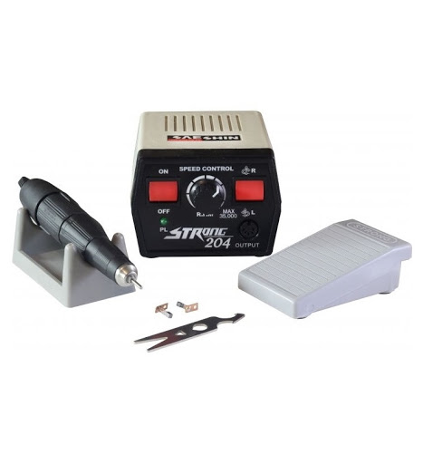 Επαγγελματικός τροχός νυχιών STRONG 204 + 102L. Ο τροχός αυτός είναι ιδανικός για συνεχή και απαιτητική χρήση. Συνίσταται ιδιαίτερα για pedicure και επίπονες σκληρύνσεις. Δυνατό και αξιόπιστο εργαλείο, κατάλληλο για έναν επαγγελματία τεχνήτη νυχιών ή ποδολόγο. Λειτουργεί από λίγες έως και 35.000 στροφές, ενώ η ένταση του είναι για κάθε χρήση (νύχια, πέλματα κ.τ.λ.). Αλλάζει φορά περιστροφής και γίνεται δεξιόστροφος / αριστερόστροφος με διακόπτη στο εμπρόσθιο μέρος. Διαθέτει πεντάλ για λειτουργία με το πόδι, ώστε να έχετε ελεύθερα τα χέρια σας.